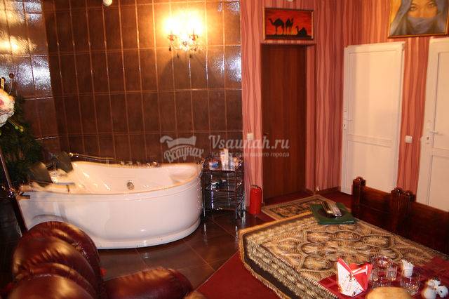 В каждой сауне уютная обстановка, мягкая кожаная мебель, телевизоры, музыка, караоке. Работает кухня, бар.